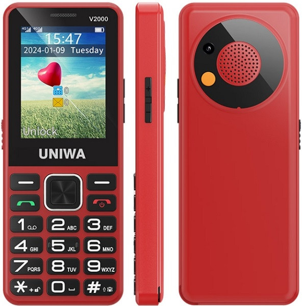 UNIWA V2000 Elder Mobile Phone Dual Sim 128MB Red (48MB RAM) - UK Plug